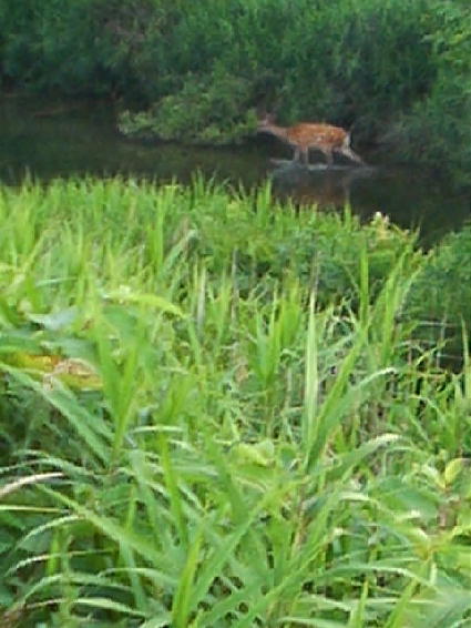 まず、第1弾。先の5月7日の掲載記事ではあまり鮮明に写っていなかった鹿の、比較的鮮明な写真を掲載します。携帯のカメラで撮った写真を整理していて再発見したものです。