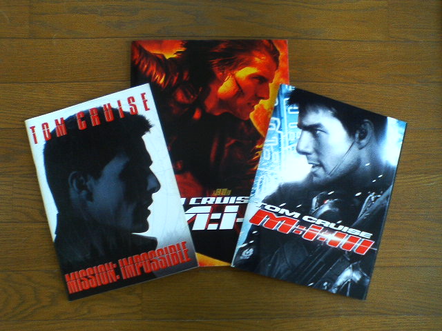 写真は映画版「ミッション・インポッシブル」シリーズのパンフレット。左からI(1996年)、II(2000年)、III(2006年)です。