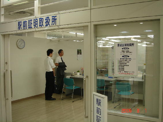 続いて、苫小牧駅前のegaoビル6階の「証明取扱所」に案内していただきました。お仕事の合間を縫って、この取扱所が設けられた経緯、意義、仕事内容などのご説明がありました。