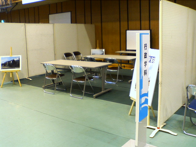 行政学科は、こういう場合は相変わらず地味です。自動車科やマルチメディア科などのように、見て分かる、即おもしろい、というものを展示できればいいのですが、なかなかうまくいきません。何か