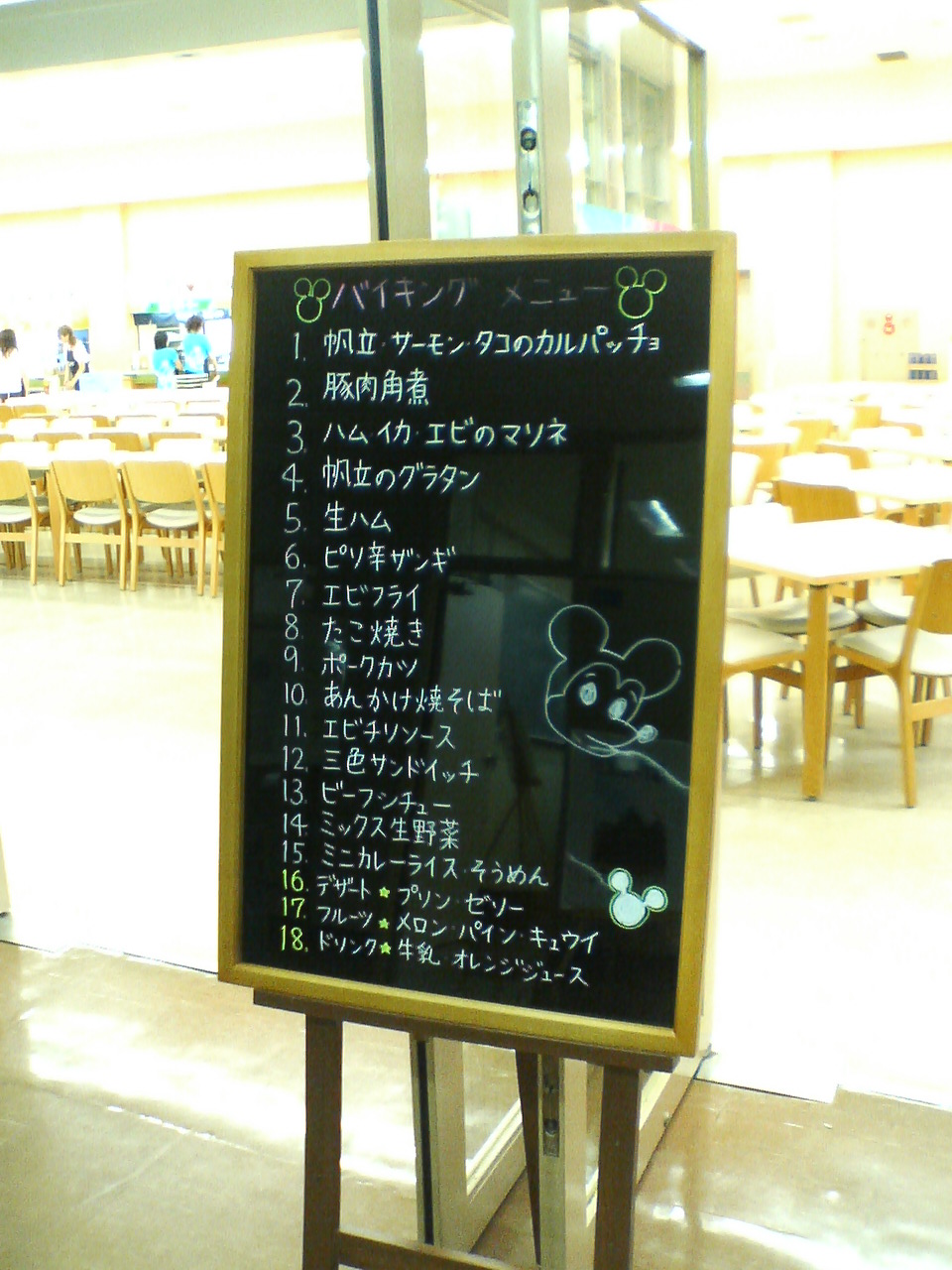 これが今日の昼食バイキングのメニューです。やっぱり楽しみですね。(準備中の食堂前で)