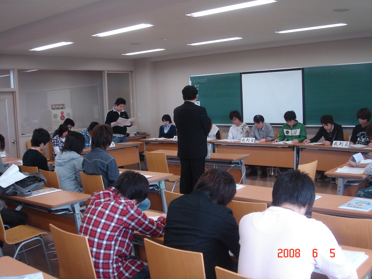 昨日6月5日(木)の午後、札幌地方検察庁から検察官の方々が来られ、行政学科の特別講義として、模擬裁判が行われました。