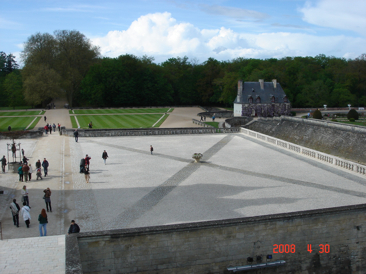 前庭です。本来のマルク家の城(城塞)はここにあったようですが、買い取ったトマ・ボイエがそれを取り壊して、水車と橋があった場所に、現在のシュノンソー城を築いたようです。そのため、現在は前庭として、城への通路になっています。