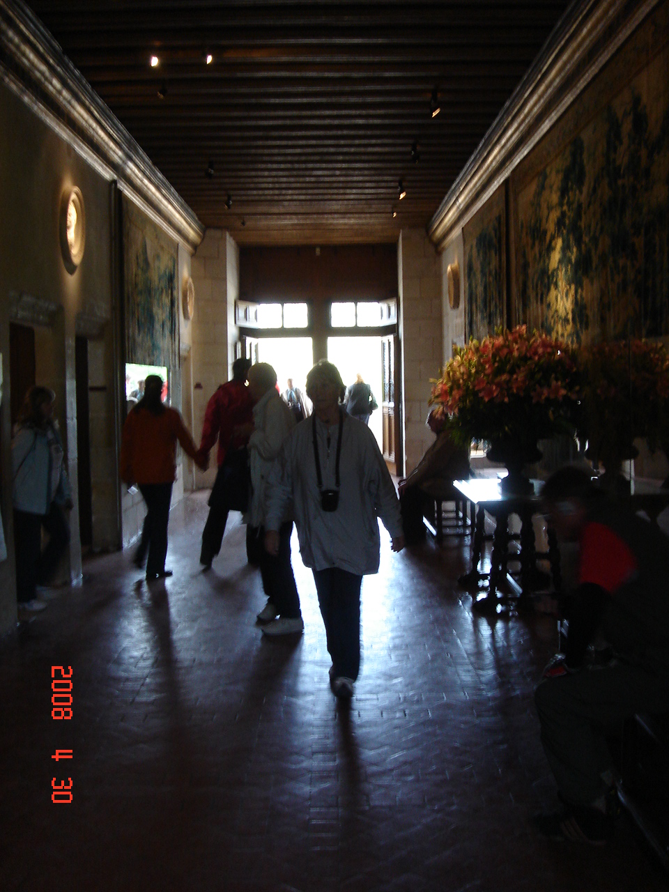 二階の、カトリーヌ・ブリソネのホールです。逆光になっているのが残念ですが、両側にはタペストリーが下げられています。飾られた花にも、この城の魅力の一つが感じられます。現在の城の所有者は民間の企業家だそうですが、城に対する細やかな愛情、行き届いた管理が伺えます。